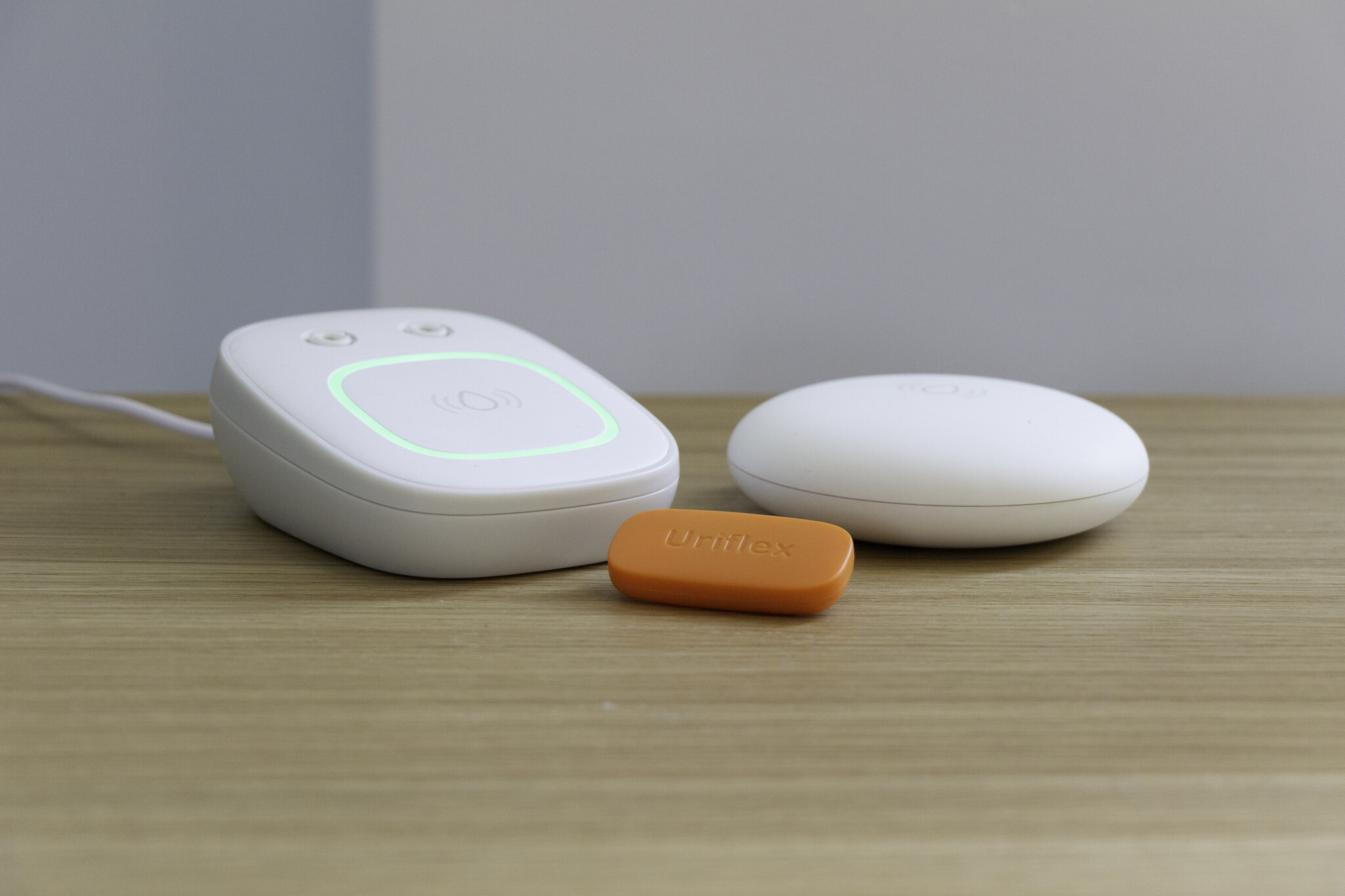 The vibrating element of the Contessa bedwetting alarm is connected to the receiver of the bedwetting alarm by a wire. Since the vibrating element is often placed under the pillow, the wire can be easily and quickly led out of the bed so that it can be used comfortably and without risk.