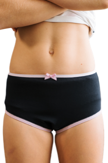 Timeless classic model, with pink trims and cute bow. This allows your daughter to go to school safely. And dressing up around gym is not a bad moment. No one will see that she is wearing underpants with a secret. The pants are packed in a handy carrying pouch. Price per piece.
