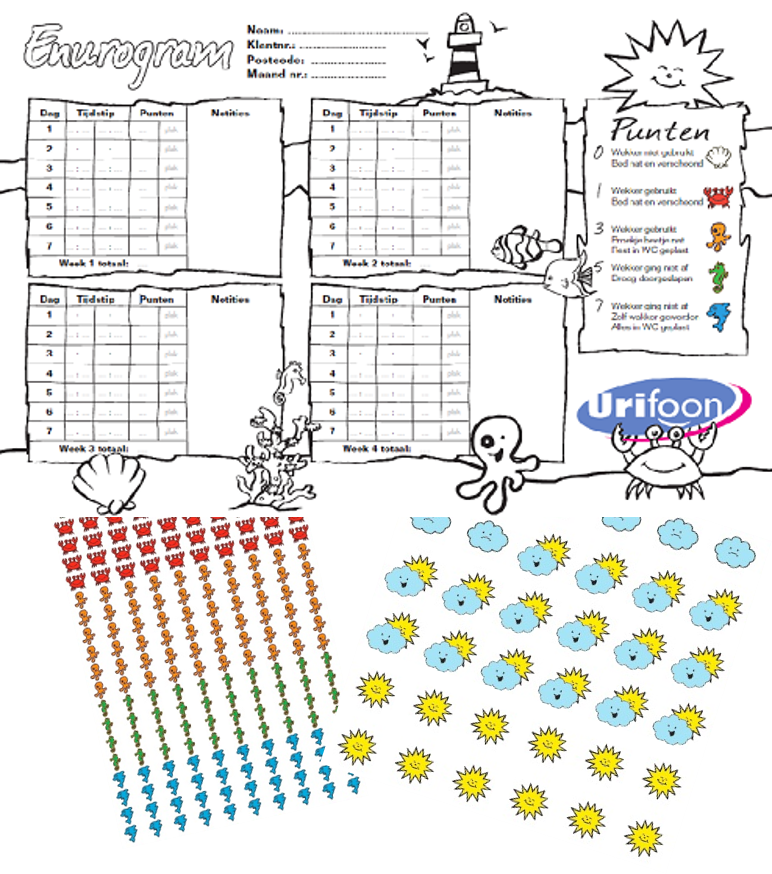 Met de plaswekker wordt een stimulerende scorekaart meegeleverd. Hierop kan dagelijks het resultaat van de afgelopen nacht worden bijgehouden. Op deze wijze kunnen punten worden verdiend en dit heeft bij veel kinderen een stimulerende werking. Gebruikers onder de 10 jaar ontvangen ook een stickervel, waarvan er dagelijks 1 op de scorekaart kan worden geplakt.
